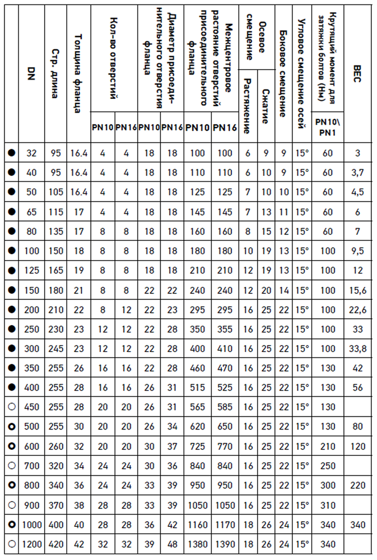 Примечание: компенсаторы начиная с DN200 рекомендуется устанавливать на воротниковые фланцы.